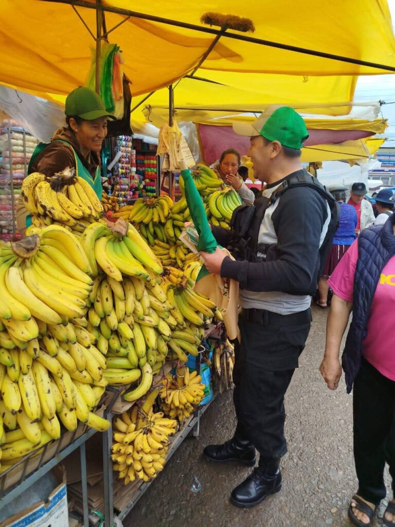 La inusual vestimenta buscó simbolizar su propuesta de reforzar la seguridad en los centros de abastecimiento y barrios de la ciudad, una de las principales preocupaciones de la población. Durante el recorrido, Mancilla dialogó con los comerciantes, quienes compartieron sus demandas más urgentes relacionadas con el orden, la protección de sus negocios y la mejora de las condiciones de trabajo.