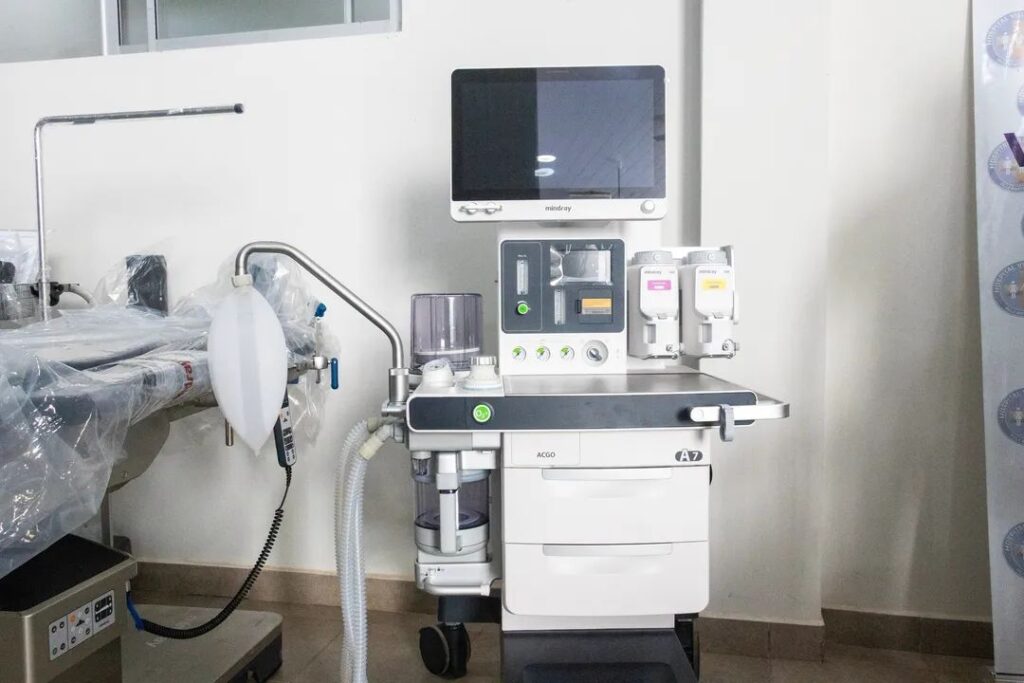 Equipamiento entregado: Bomba de infusión volumétrica, Desfibrilador, Mesa de quirófano, Máquina de anestesia, Bomba de infusión a jeringa, Lámpara cialítica