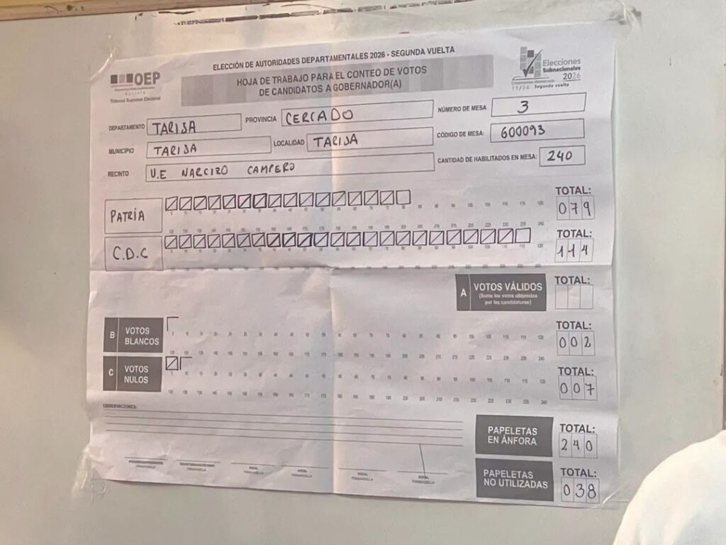 El resultado ha generado expectativa debido a que se trata de la misma mesa en la que sufragó el mandatario, lo que otorga un matiz simbólico al triunfo de Soruco.