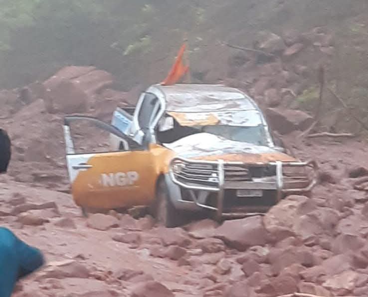 El candidato a gobernador por el partido NGP en Tarija Never Antelo, vivió momentos de tensión en la ruta Entre Ríos – Palos Blancos, cuando el vehículo en el que se trasladaba fue alcanzado por rocas producto de un derrumbe.